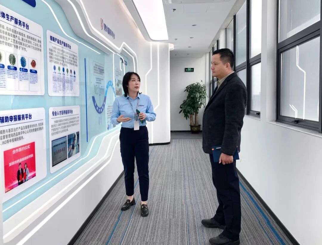 第一时间,袁帅副局长一行在史渊源董事长和综合办公室栾知时主任的陪同下参观了智慧展厅,对公司的创始人团队、企业开展历程、细胞治疗的开展史及现状、服务平台建设及企业愿景等有了初步的分析,对深圳凯发天生赢家一触即发首页在生物医药这一新兴产业上、以治病救人的初心为医院、药企给予细胞治疗的一站式服务,给予了充分的肯定。