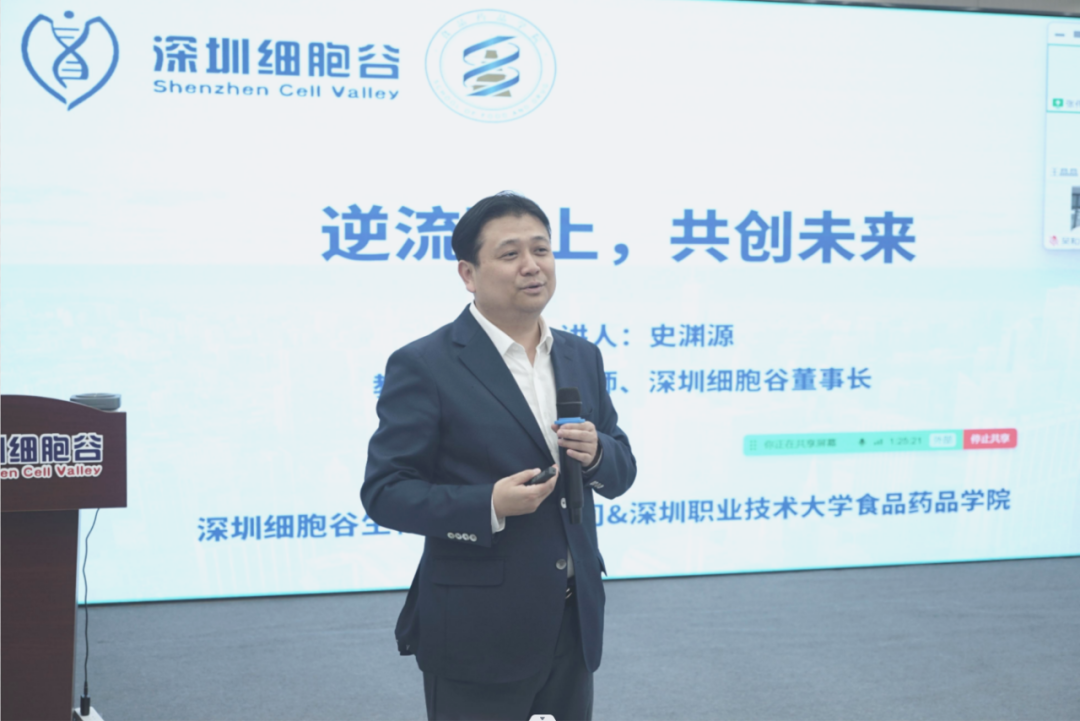 研讨会上,我司董事长史渊源教授对三十余位深职大食药学院的领导、师生们表示热烈欢迎,并召开《逆流而上,共创未来》为主题的演讲。史渊源教授介绍了细胞与基因治疗的行业开展趋势、企业战略布局和定位、生产研发方面的重大突破,并表示深圳凯发天生赢家一触即发首页将发挥在细胞与基因治疗领域核心且先进的技术优势,运用成熟的定向人才培养模式,持续深化与深圳职业技术大学在产学融合等方面的研讨与合作,协同探索更多的交叉创新点,加速细胞与基因治疗行业的人才培育,并秉承“不忘初心、治病救人”的理念,与深圳职业技术大学师生携手打造行业新业态。