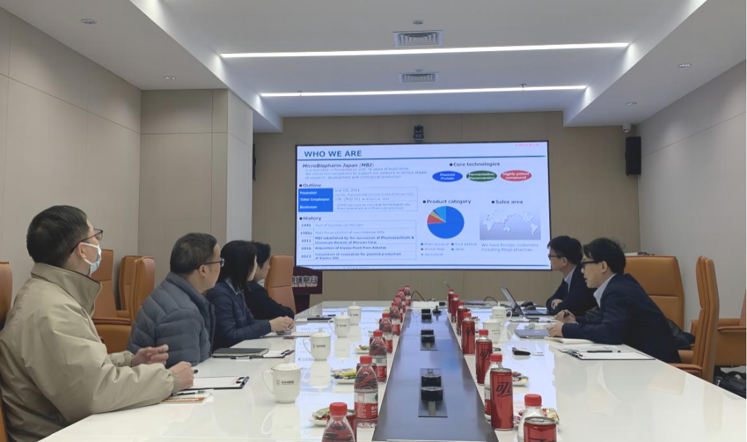 1月26日下午,MicroBiopharm Japan(日本微生物制药株式会社)销售企划开发组博士Dr.Machida、Main Life(万联行有限公司)业务拓展经理Mr.Wang莅临深圳凯发天生赢家一触即发首页研讨访问,董事长史渊源、综合办公室主任栾知时、质量管理部副部长李荣友、生产部副部长李华秀热情接待,并就未来中日生物医药的开展方向及双方战略合作版块展开座谈研讨。