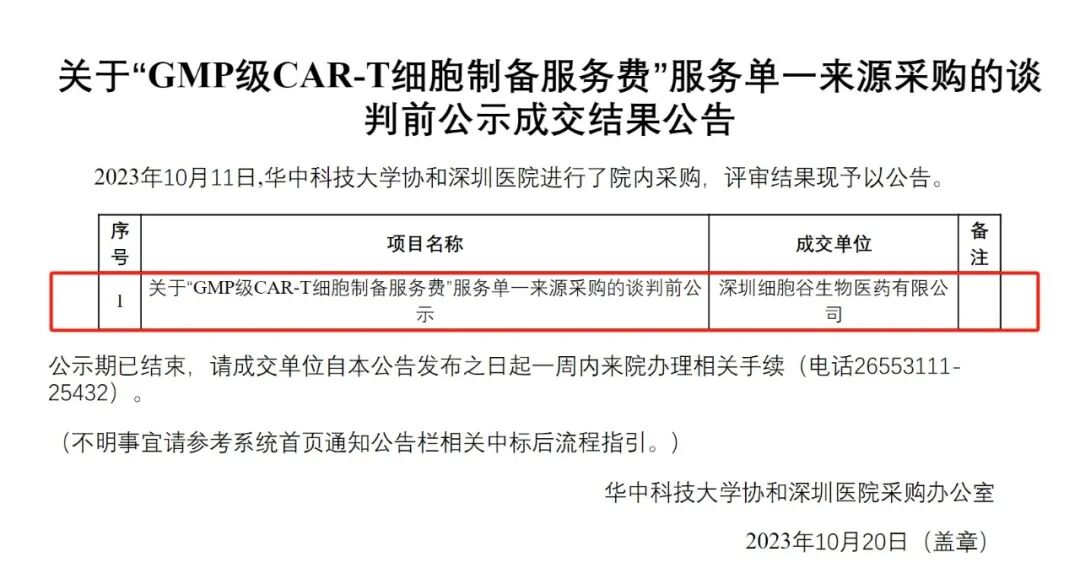 深圳凯发天生赢家一触即发首页中标华中科技大学协和深圳医院“GMP级CAR-T细胞制备”采购项目