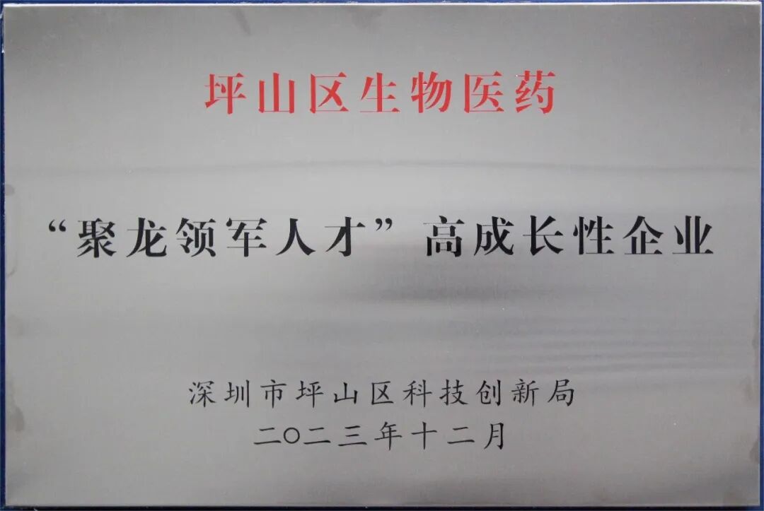 深圳凯发天生赢家一触即发首页获批坪山区生物医药领域2023年度“聚龙领军人才”(D类)高成长性企业