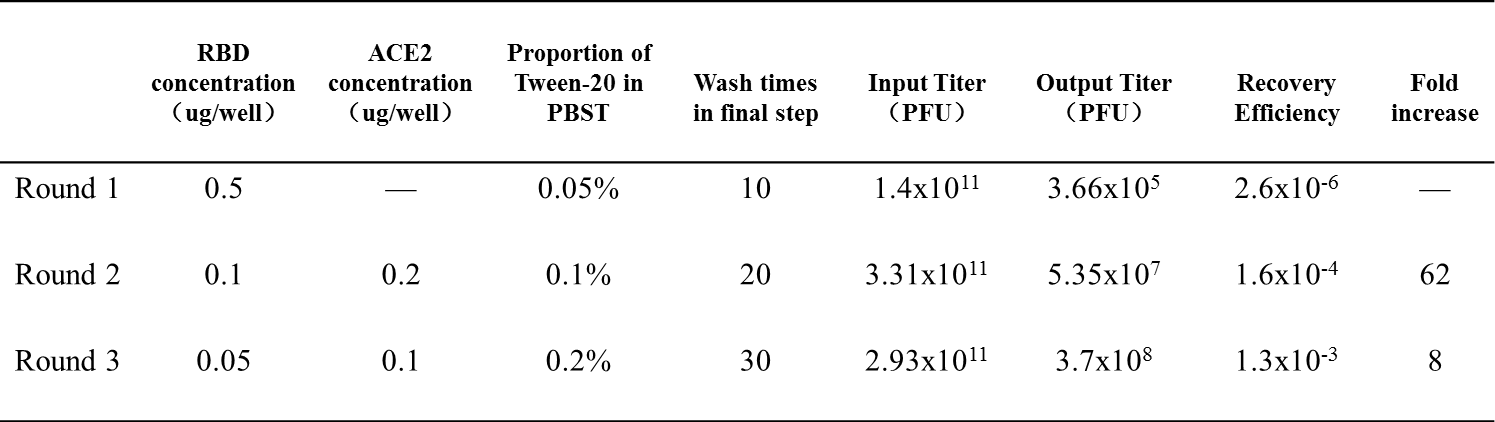 Table 1. Panning process conditions and enrichment calculation results of each round