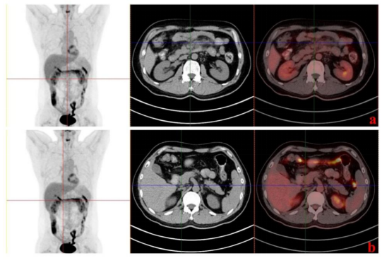 此外,我们检测CD4+/CD8+T细胞的比例发现其在第60天下降后增加,而CAR拷贝数先增加后减少。我们推测,肿瘤可能在第60天左右复发,休眠的CAR-T细胞被激活,导致CAR拷贝数升高,细胞毒性CD8+ T细胞增殖并杀死肿瘤,第四个月PET-CT(图5)提示患者已完全缓解(CR)。